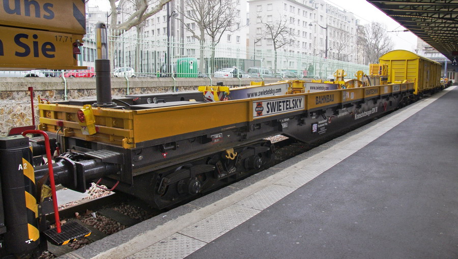 D-RTS 99 80 9320 010-8 - wagon porte contrepoids en gare de Paris Est voie n°30 le 21 mars 2015