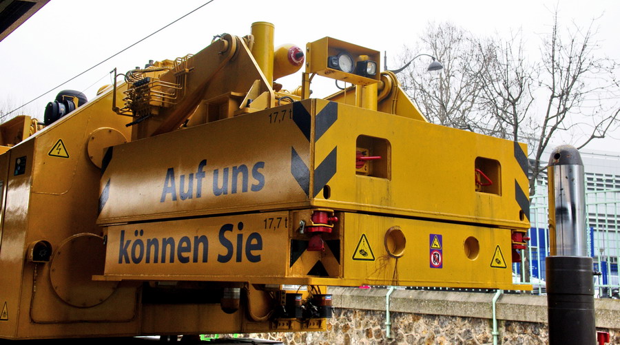 D-RTS 99 80 9419 011-8 - grue KIROW 1600 SWIETELSKY en gare de Paris Est voie n°30 le 21 mars 2015