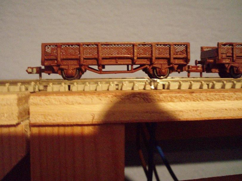 "Salut à tous, je vous montre deux wagons transportant des traverses que j'ai construit à l'échelle N, j'ai joint une photo du wagon réel.