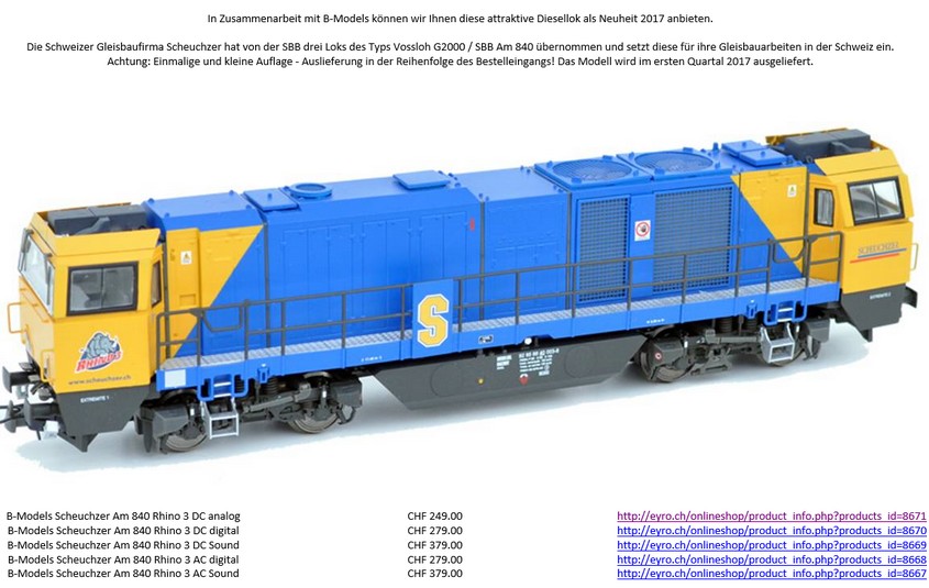 pour commencer, bonne année 2017. belle surprise pour les fan's de TTX. B-Models sort fin 2017 la version Scheuchzer de l'Am 840 qui appartenait au CFF que marklin à sorti sous ses couleurs.