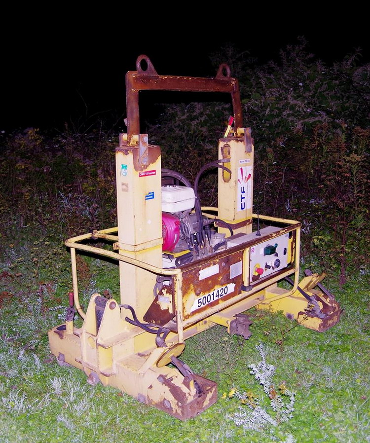 - le levage de chaque file de rail indépendamment à l'aide des 2 vérins et 2 pinces hydrauliques