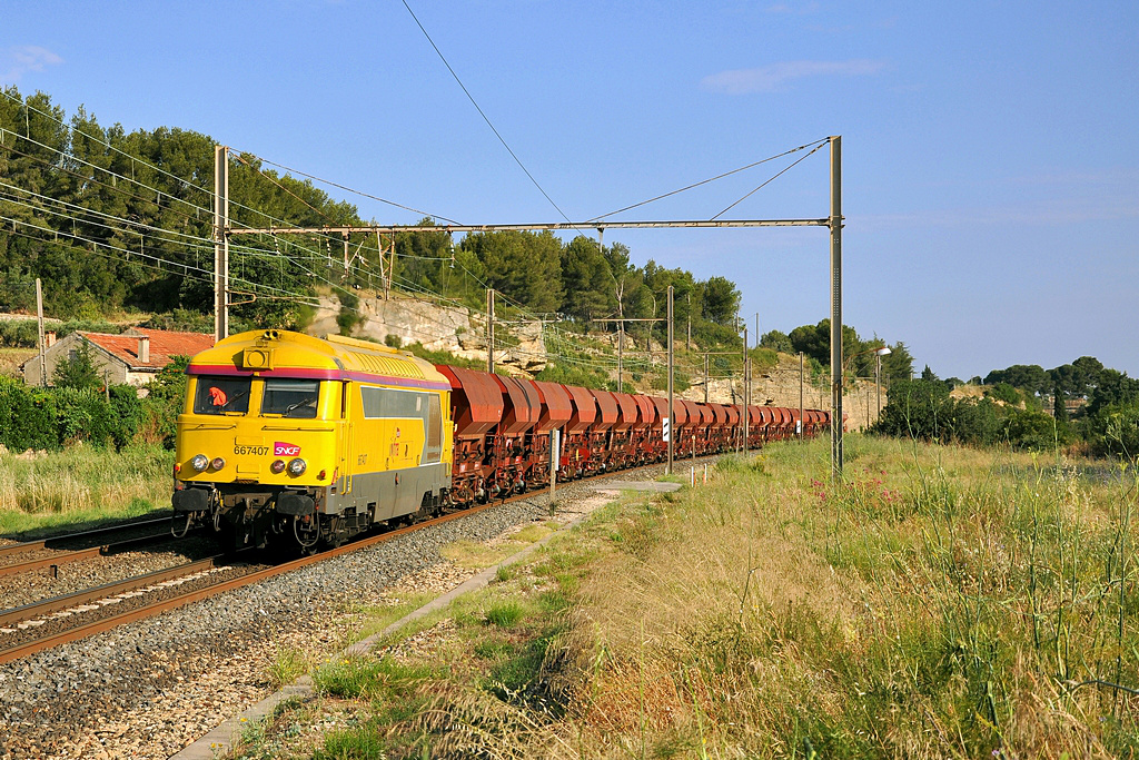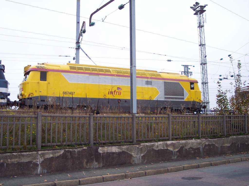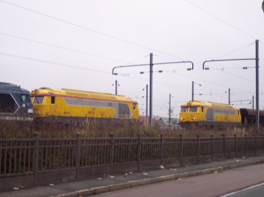 en compagnie de la BB 67412 Infra qui arrivait de Montbéliard avec plus de 30 wagons vide mais qui en à laissé la moitié a Belfort pour continué son chemin sur Giromagny