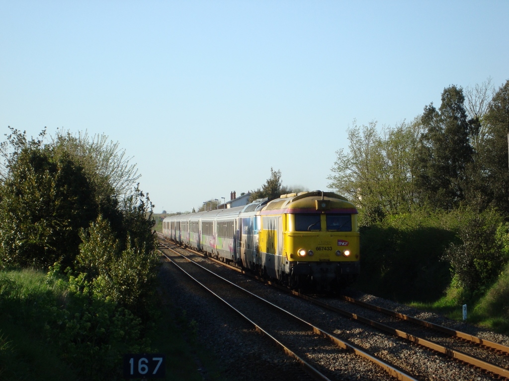 Bonjour La 667433 arrive de l'ouest avec la 622366 en tête à 15h35 dur la zone de garage des rames Infra/SNCF Saint Pierre des Corps le vendredi 22-08-2014