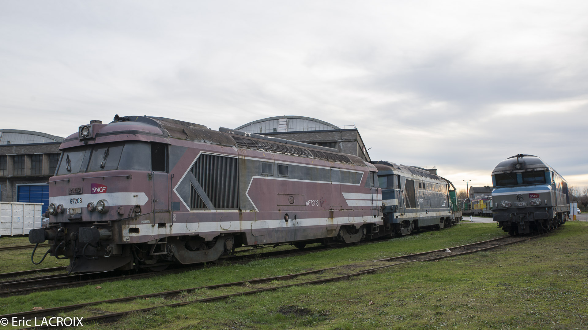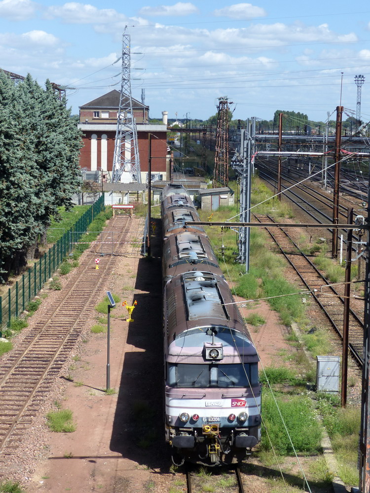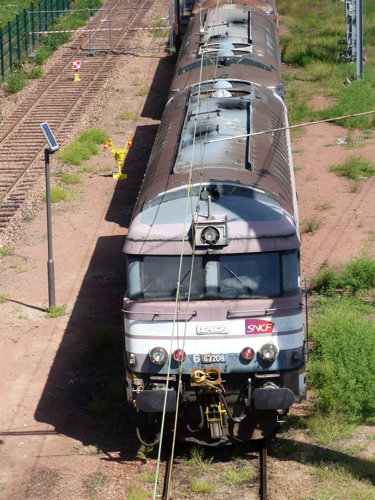 Voici la 667208 (ex 67008 mise en service le 06-12-1963) avec les 667238 et 667222 à la sortie Ouest du dépôt de