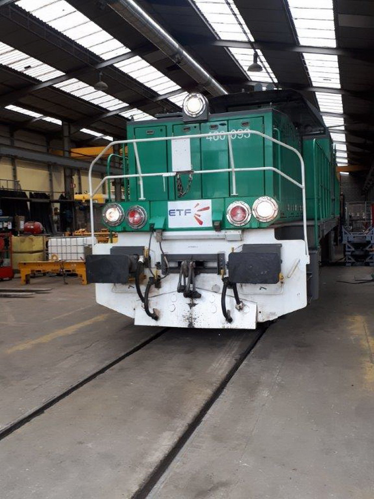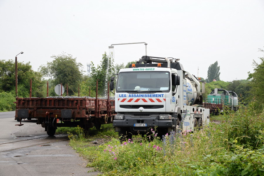 elle se trouve avec la 60105 d'ETF pour manoeuvrer une rame de wagons à essieux K39 pour le lavage du ballast pour un chantier à Seclin