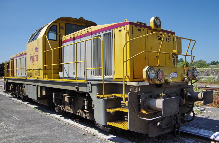 La voici sur un TM d'Infra dans le dépôt de Saint Pierre des Corps le 09 juillet 2017