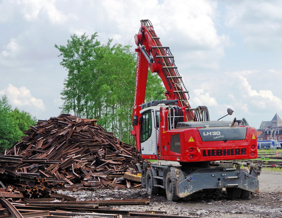 LIEBHERR LH 30 Industry Litronic n°WLHZ1200KZK083106 sur la base de travaux de la gare de Laon le 22-06-2018