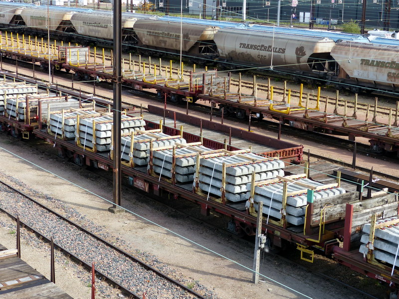 Voici le wagon 80 87 972 2 500-6 Ua R09 5 F SNCF-PSL avec un chargement de traverses
