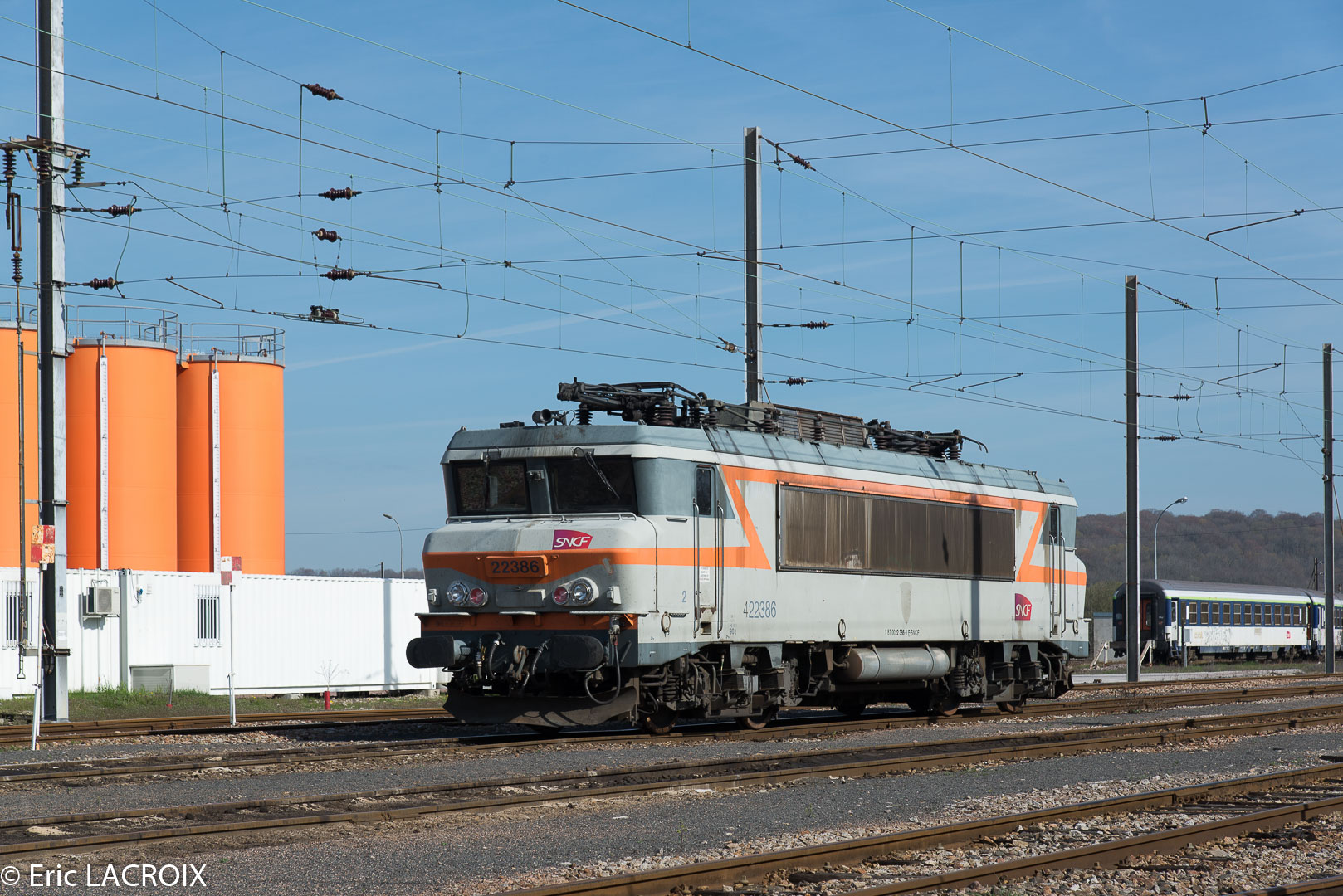 Voici la 422386 au triage de Saint Pierre des Corps le samedi 11-10-2014 avec 2 voitures