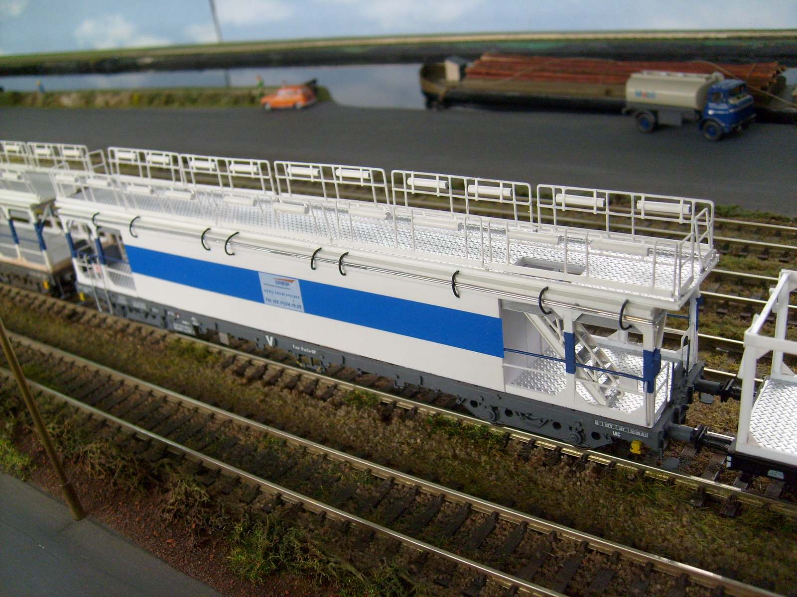 Voici les photos du troisième wagon plateforme. Comme à son habitude, Christian a rendu la perche de mise à la terre fonctionnelle ... mécaniquement !