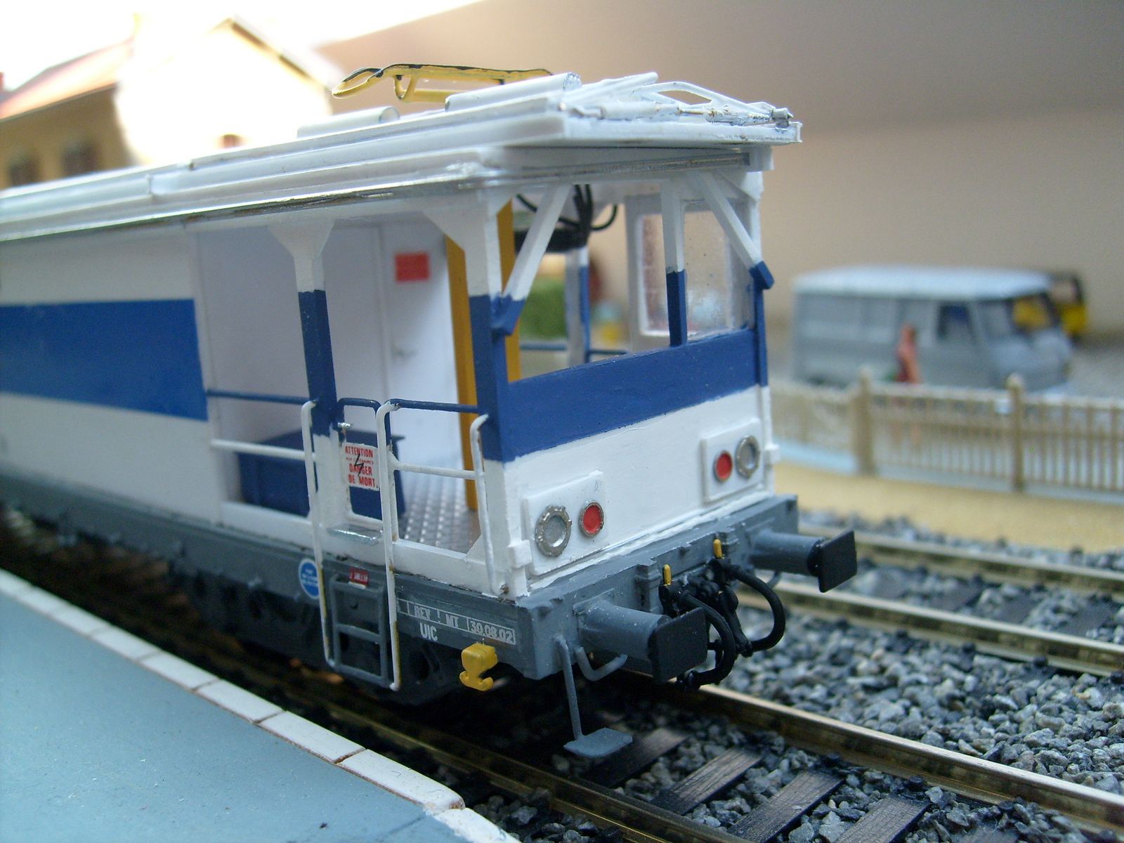 Il manquait à la rame sa voiture de cantonnement,c'est maintenant chose faite, sur une base de voiture Ocem à faces lisses B5D Jouef