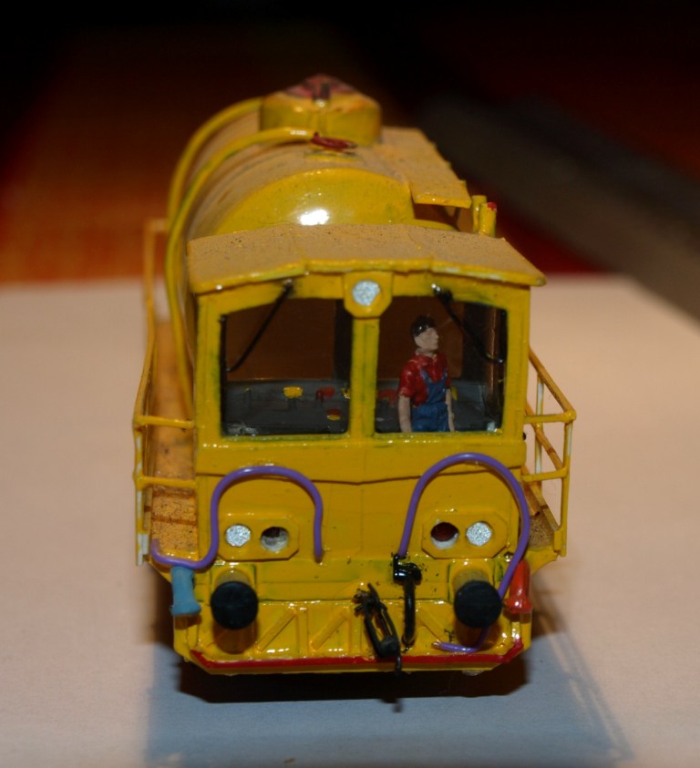 Construit à partir d'un wagon muni d'un tampon pour le nettoyage des voies, l'antique (maintenant) wagon citerne rouge Jouef, siglé VB.