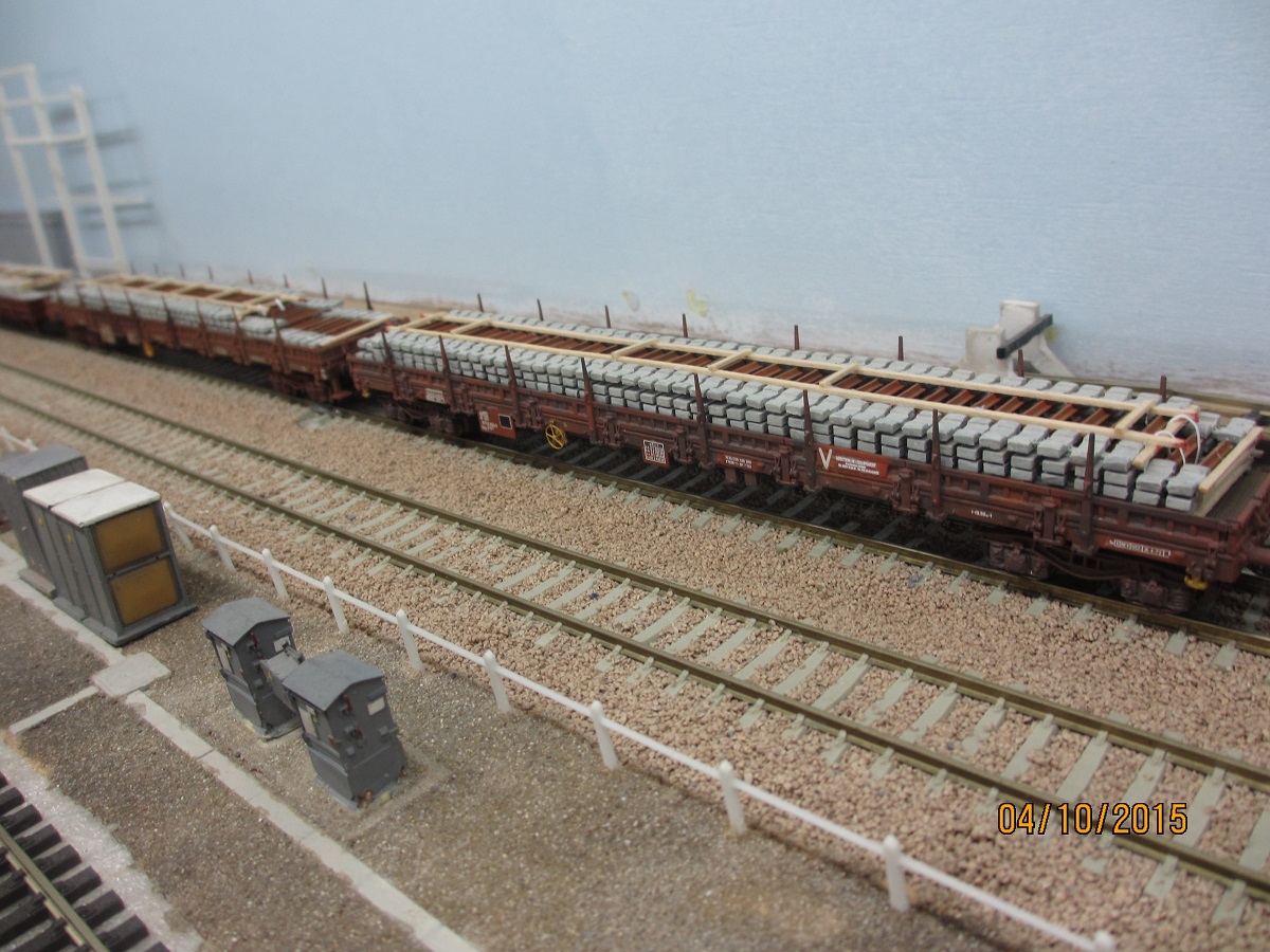 La reproduction des traverses bi-blocs a fait l'objet d'un article de ma part dans le RMF de juin 2006 : " des recettes pour vos plats : des chargements de traverses béton et bois". Le but de cet article était de réaliser des petites rames locales de trains de chantier, et d'en concevoir le chargement. Toujours d'après des photos réelles.