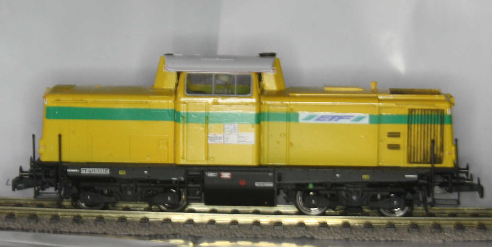 Les 2 loco sont des modèles Brawa (42826) redécorées avec soin par "Rails Models Création". Il y en aura 4 autres, mais les délais sont longs. Dommage qu'on ne puisse les mettre en UM (attelages fonctionnels non modifiables)