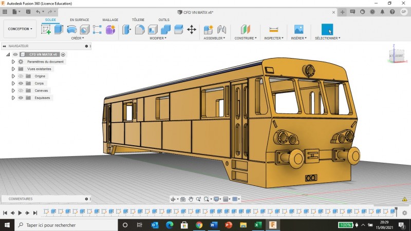 Bon voilà quelques photos de la modélisation (soyez indulgents ce n'est que ma troisième modélisation 3D sur Fusion 360)