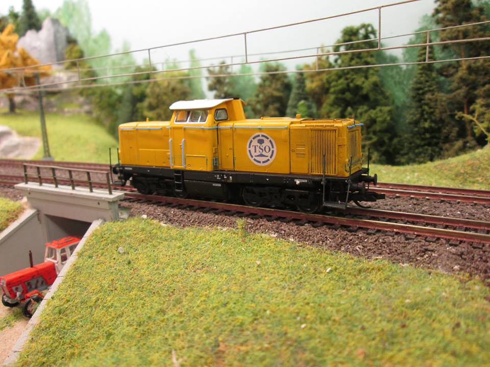 Et un V 212 TSO sur base Tillig également. Cette loc est un modele de travaux allemand en serie limité pour les ateliers des journée portes ouvertes de Tillig, membre du Tillig TT Club j'ai pu me procurer cette reference qui m'a été livrée entierement en pieces détachés. Apres decapage et mise en peinture la voici avec un decal de Jean michel, mais il manque les marquages complementaire, et comme pour la Colas je prefere ne rien mettre pour le moment plutot que des horreurs.