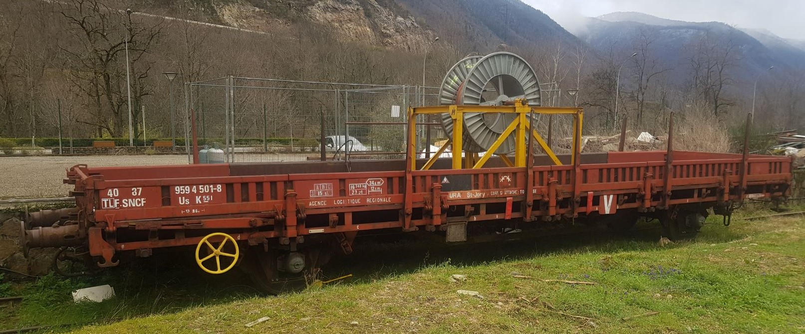 Voici ce wagon 40 87 959 4 501-8 Us K55 1 SNCF-TL vu en gare d'Ax-les-Thermes (Mars 2020)