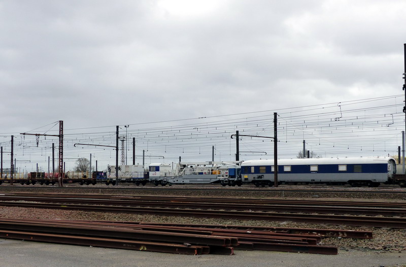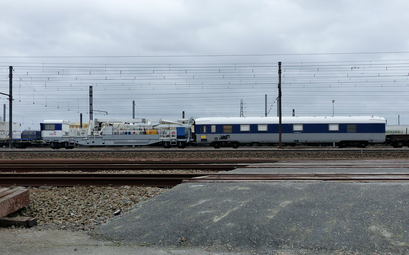 Bonjour On retrouve la voiture de cantonnement avec le PF6 - 80 87 979 9 301-7 Uas W42 2 F SNCF-RO de Caen et le wagon plat à essieux 40 87 954 8 405-9 Us V41 2 SNCF sur la petite base de l'Infrapôle LGV Atlantique de SPDC le dimanche 30-11-2014