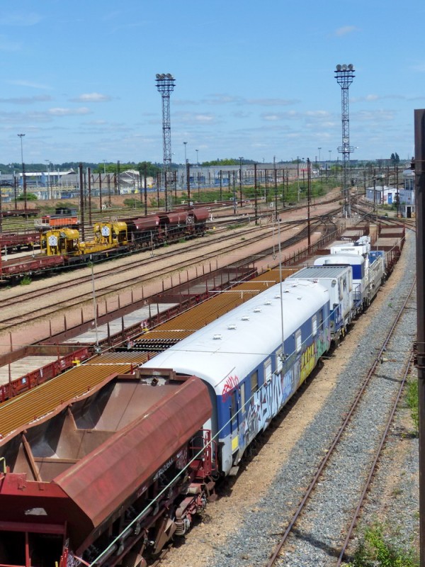 La voici à Saint Pierre des Corps le 21 mai 2017 avec le wagon 40 87 954 8 405-9 Us V41 2 et le PF6 - 80 87 979 9 301-7 SNCF-RO et une immatriculation plus complète 80 87 979 3 063-9 Uas H55 0 SNCF-MZ