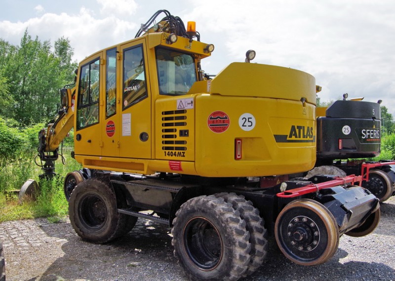 Voici la Pelle Rail route Atlas 1404 KZW n°241Z301929 de 2015 pour ETTB location TP n°460 avec marquage MZ