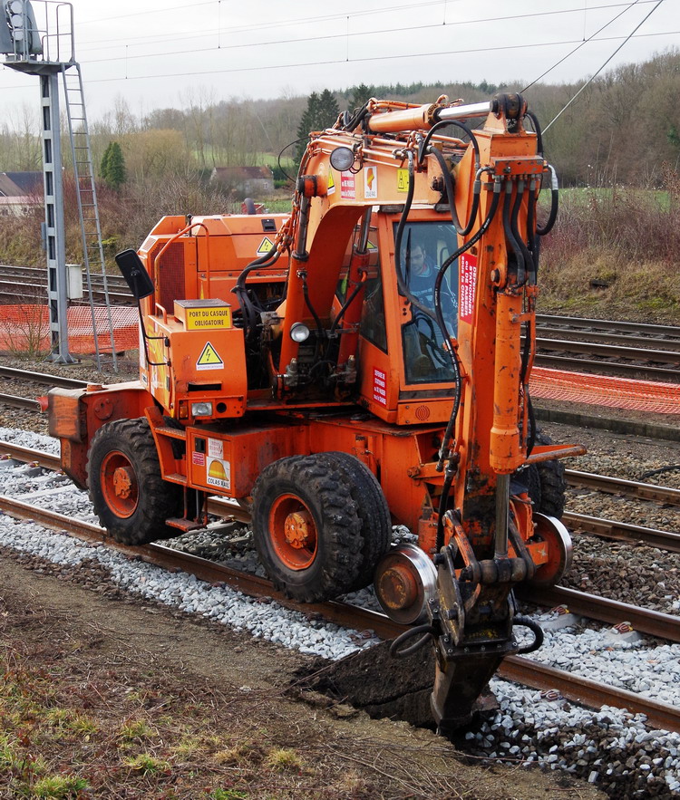La voici en gare de Mennessis (02) dans le cadre du RVB de la ligne Amiens Tergnier avec la démolition des anciens quais datant
