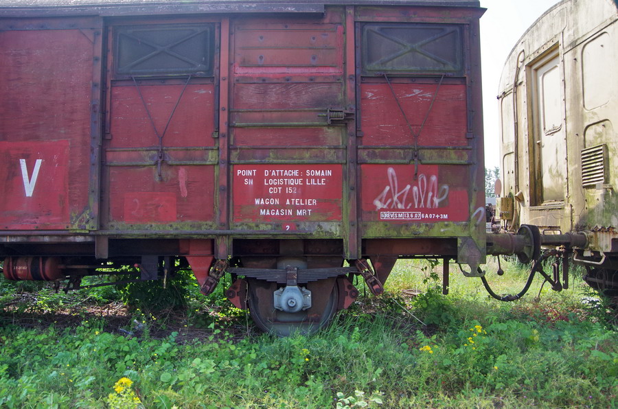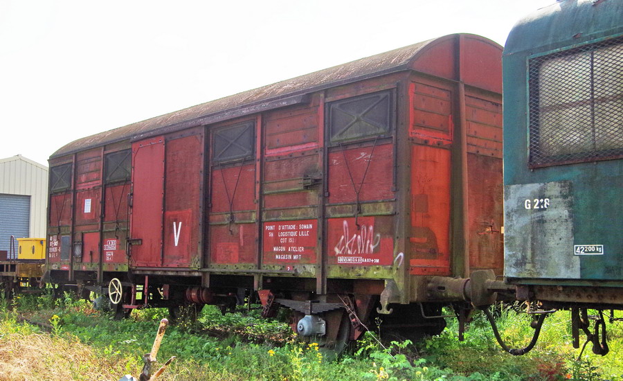 Le wagon couvert atelier magasin MRT 40 87 959 0 255-5 Us G54 2 F SNCF-LL Point d'attache Somain