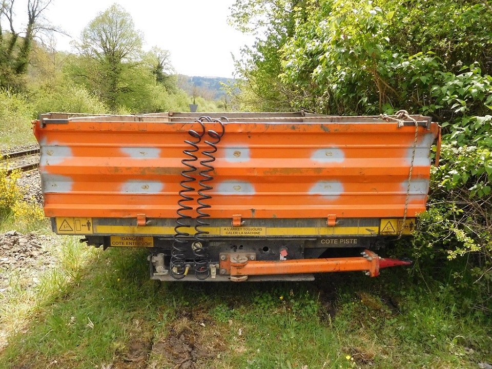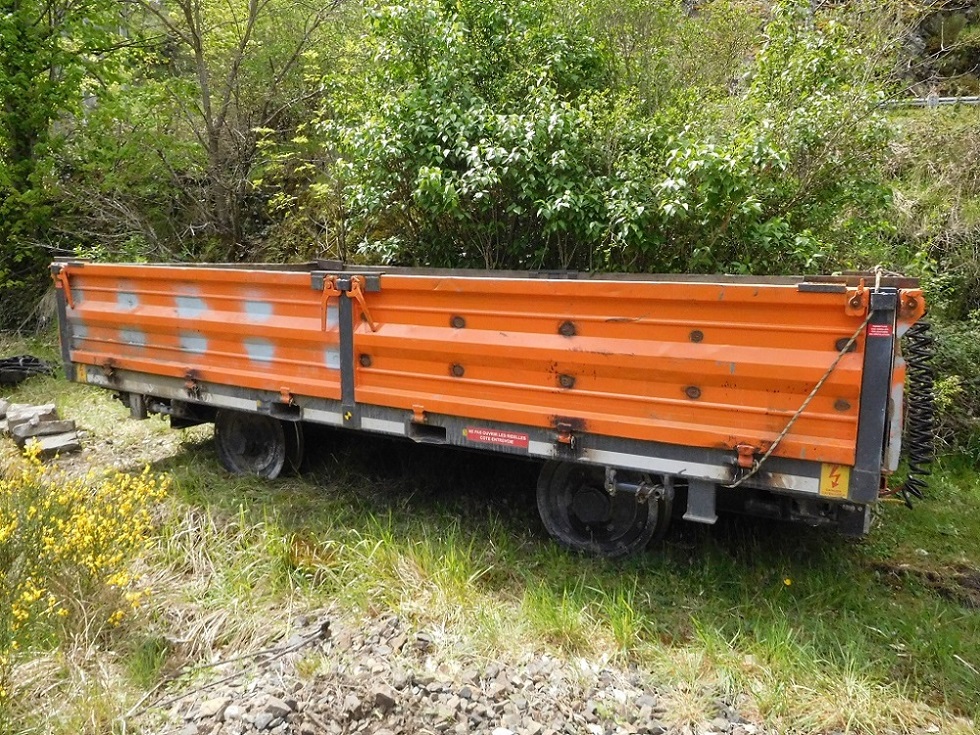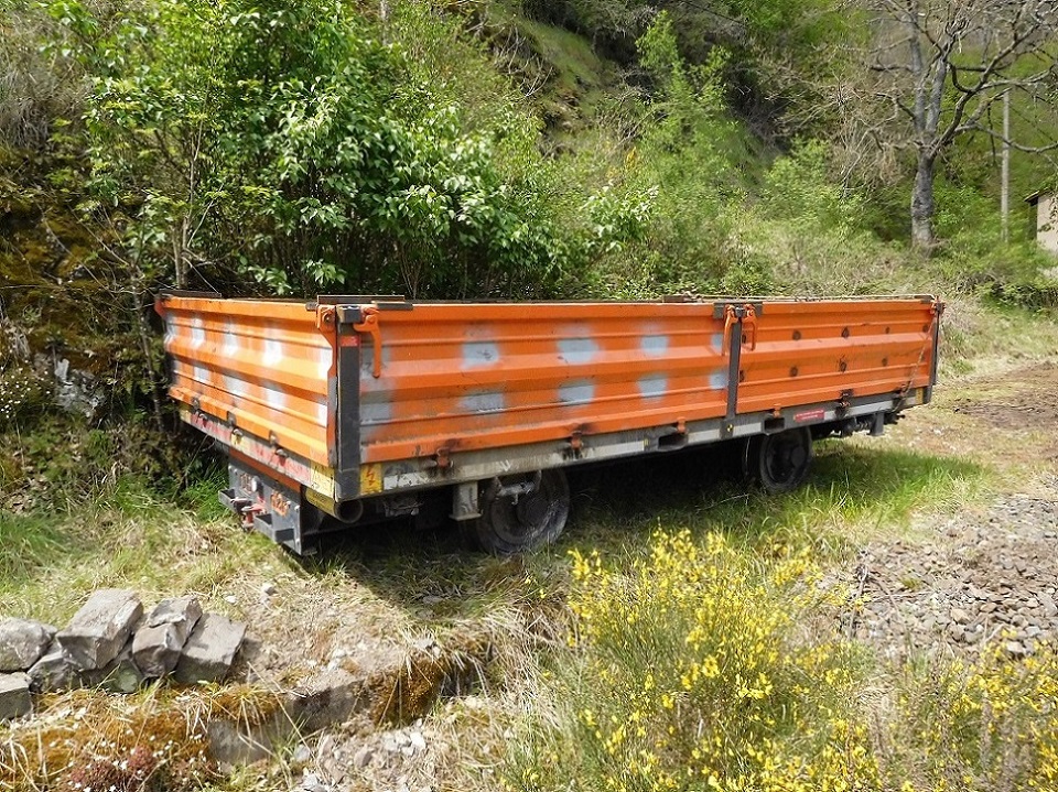 Une petite remorque qui accompagnait la Pelle RR ZX 170 PPR n°C231 de chez Delisle TP dans les gorges d'Allier en mai 2021