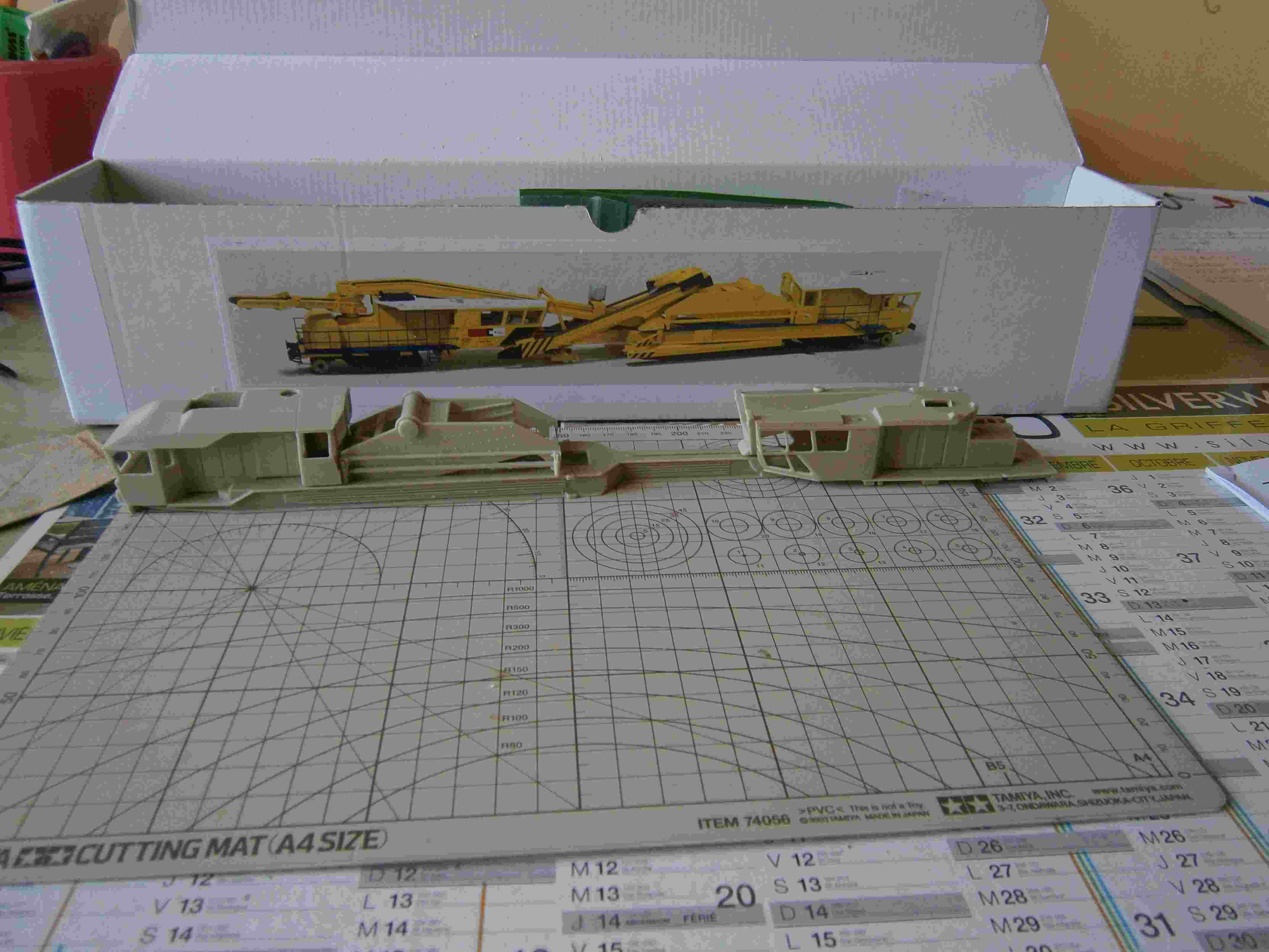 La zébrure du support de convoyeur de répartition de ballast ,c'est un décalque noir sur transparent 0.5 espassé de O.5 mm