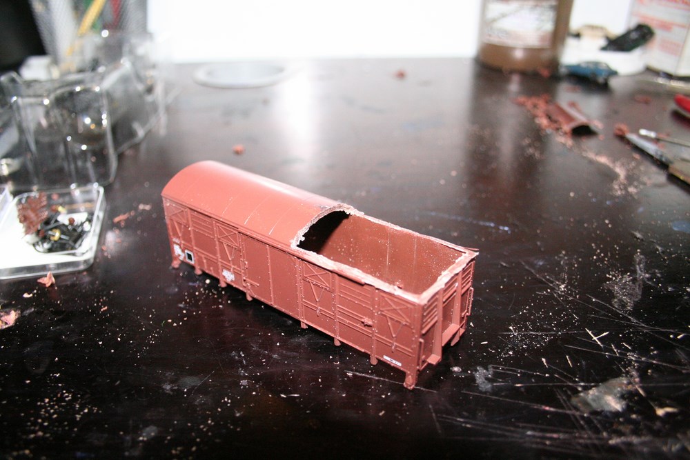 voici mon wagon graisseur de caténaires en cours de construction.Je suis parti sur une base piko , COUVERT TYPE Gs 4
