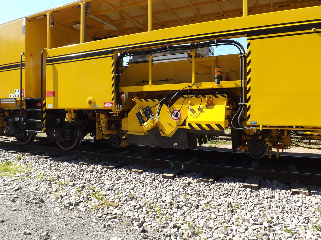 - Brosses tourteaux ; brosses de finition deux par file de rails permettant d'éliminer le ballast resté au niveau des attaches et de l'âme du rail