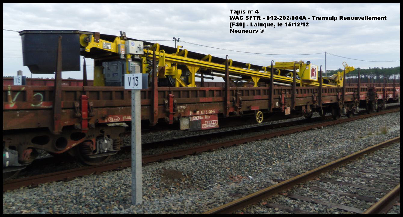 Je suis actuellement en déplacements vers FOS sur Mer et, en passant à CHATEAUNEUF les MARTIGUES, j'ai vu sur une voie de garage des tombereaux UAS SNCF et des tapis roulants aux couleurs de TRANSALP en construction; j'ai demandé l'autorisation de photographier aux monteurs italiens sur place qui ont demandé à leurs chefs par téléphone, mais refus de ceux-ci. :nonnon: