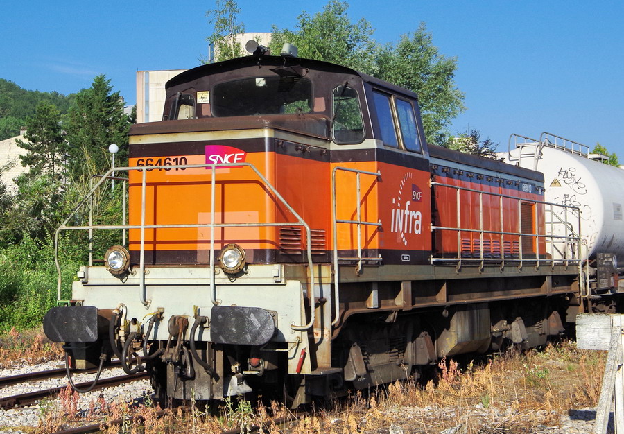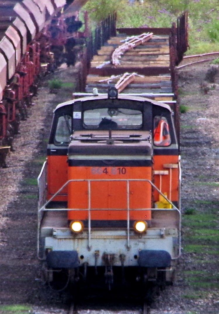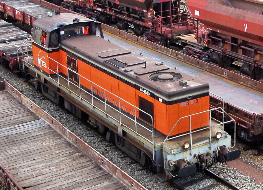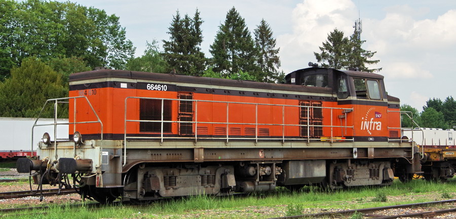 Voici la 6 64610 Infra ex 63698 mise en service le 23-04-1954 en livrée Arzens avec le logo Infra