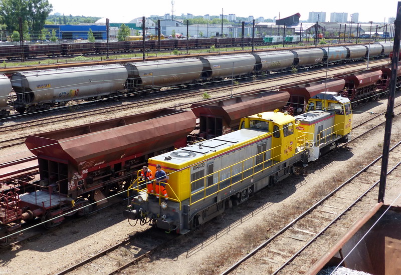 On retrouve la 664639 à la sortie Nord du dépôt de Saint Pierre des Corps le mercredi 20-08-2014 sur un TM