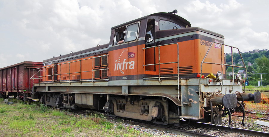 BB 64607 - Infra sur la base de travaux de la gare de Laon le 08-06-2018