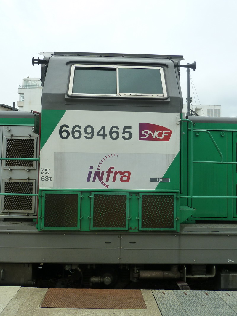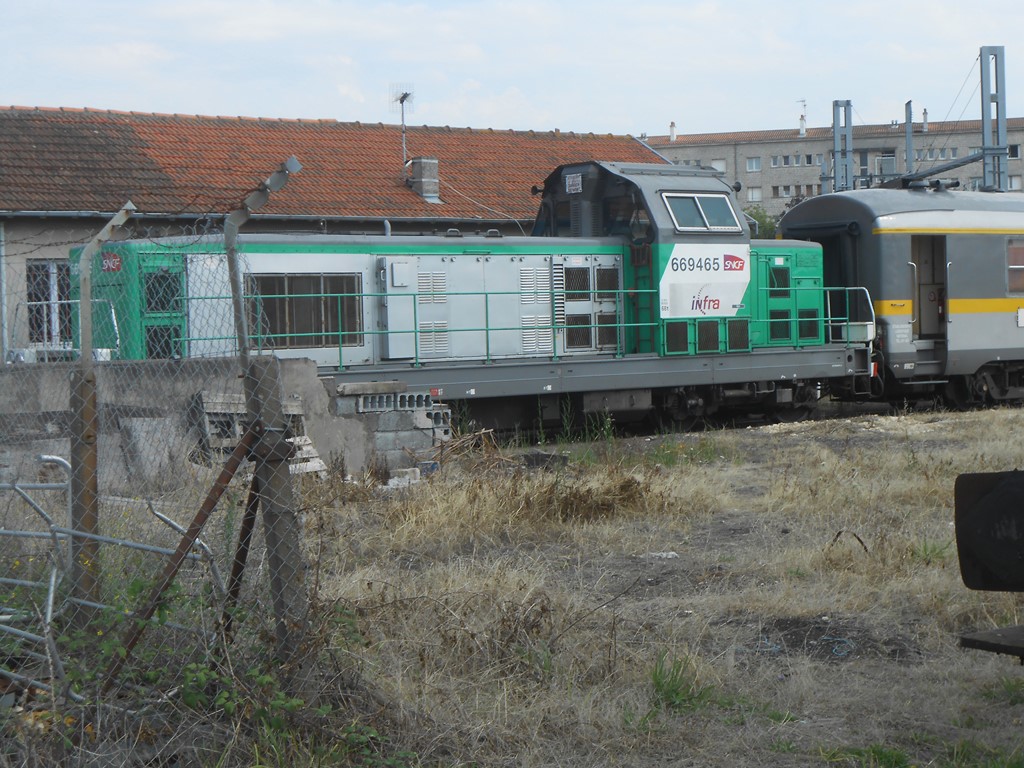 Voici la 669465 Infra avec le logo en livrée Fret (ex 66465) en tête d'un train Mauzin avec la 469498 Infra en livrée Fret en queue et