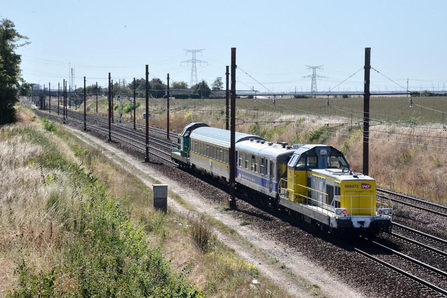 composition de la rame : 669472 + Automoteur V5 - 9.601 - SNCF-PN "Venus" + 469446 Infra Livrée Fert