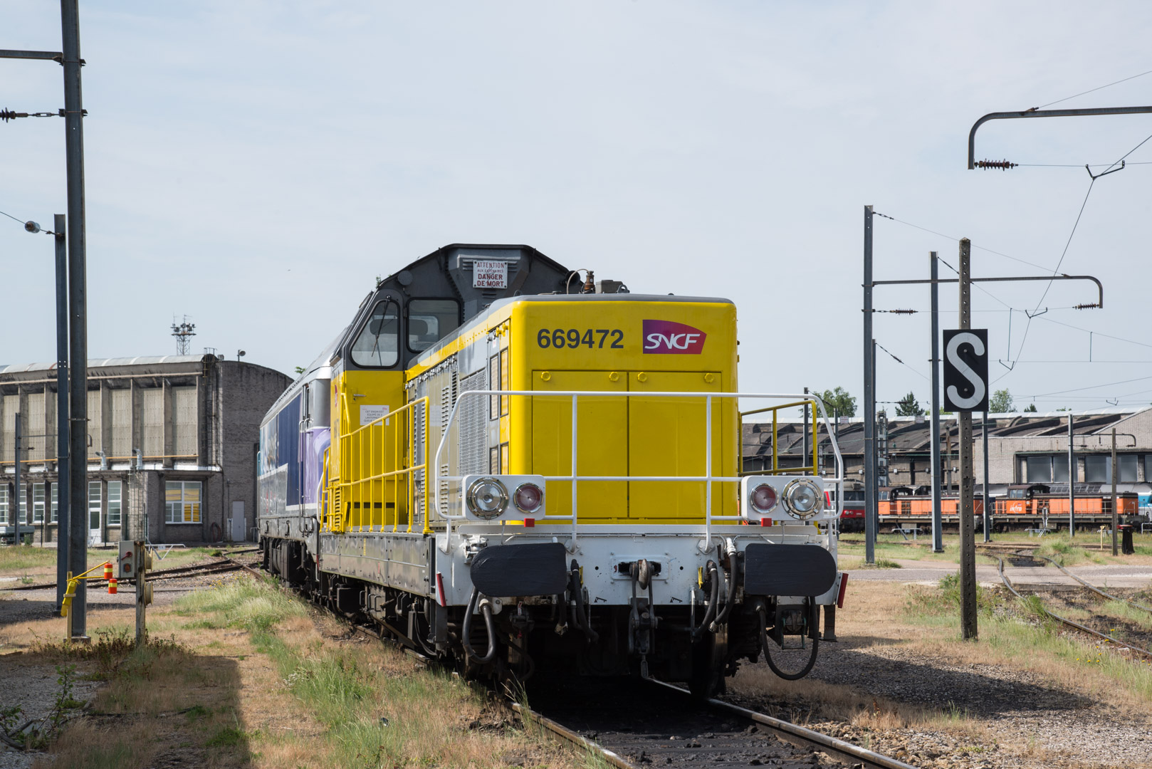 Bizarre, cette livrée. Une nouvelle livrée SNCF réseau en perspective? Ou tout simplement une livrée provisoire pour des locos ex-FRET devenues Infra/réseau?