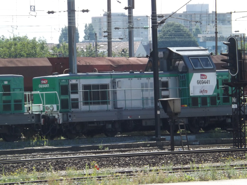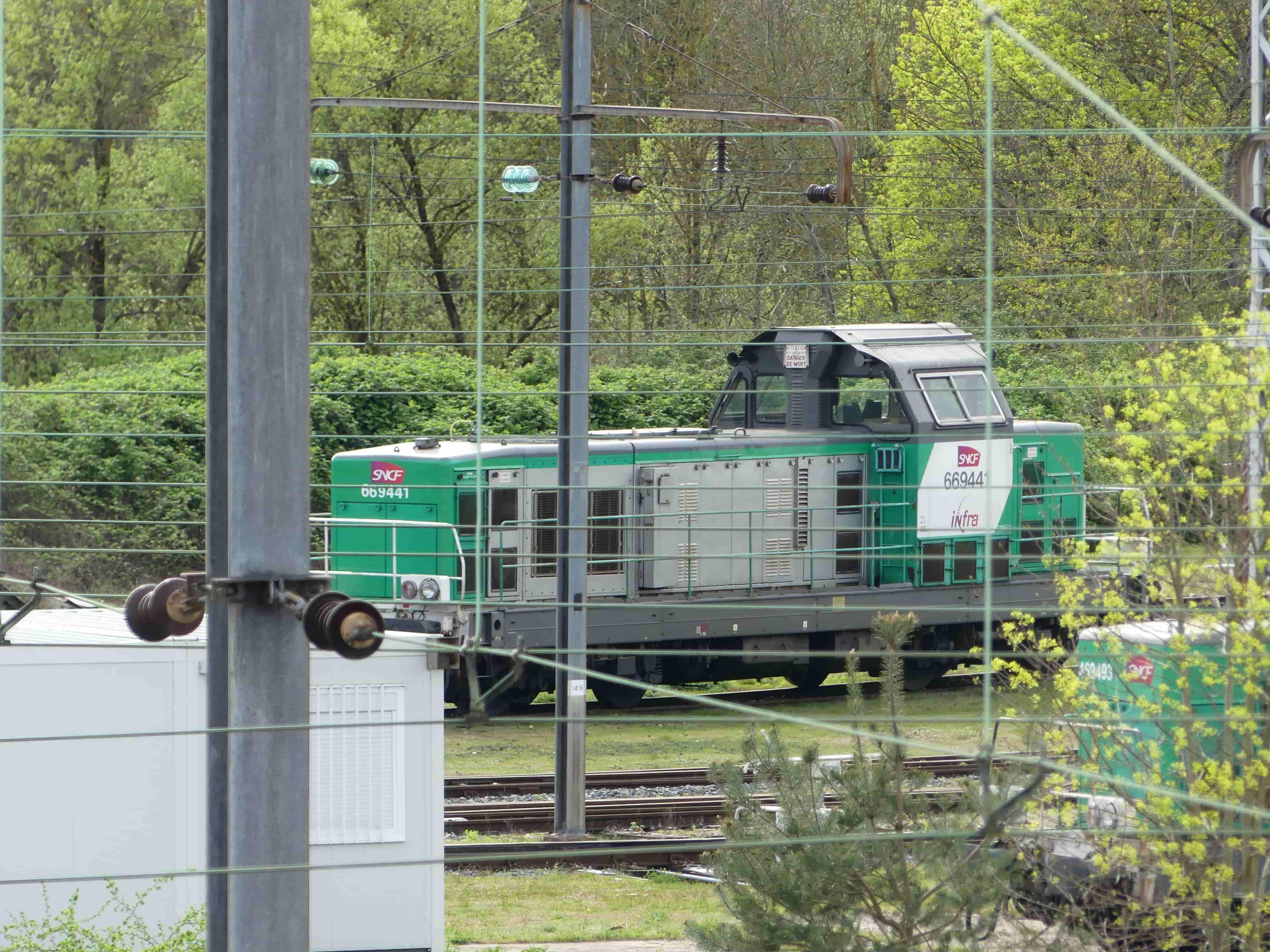 Voici la 669441 Infra avec le logo en livrée Fret (ex 66441 mise en service le 29-05-1969) sur un TM à la sortie nord du
