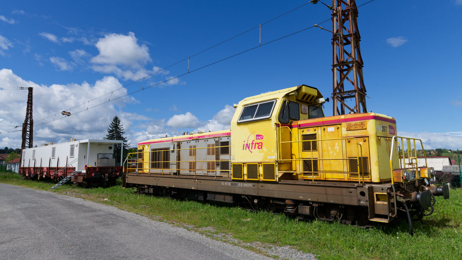 Voici la 669297 en livrée Infra (ex 66297) qui arrive de l'ouest à 15h48 avec une rame Infra sur la zone de garage des rames Infra/SNCF