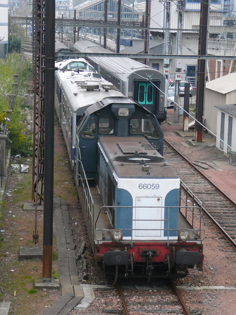 Voici la 66059 en livrée bleue sortie le 30-09-1961 sans le logo Infra à Tours Poste O avec une rame Mauzin le 10-04-2008