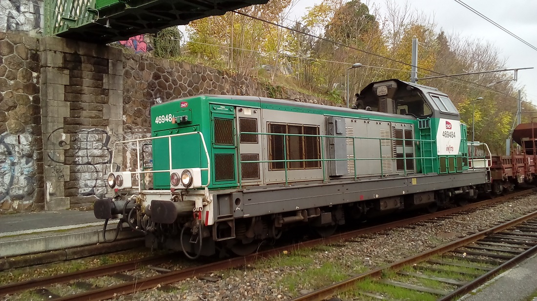 Voici la 469484 Fret avec logo Infra avec la rame Mauzin - Chinon gare de Tours a.15h48 sur la voie K
