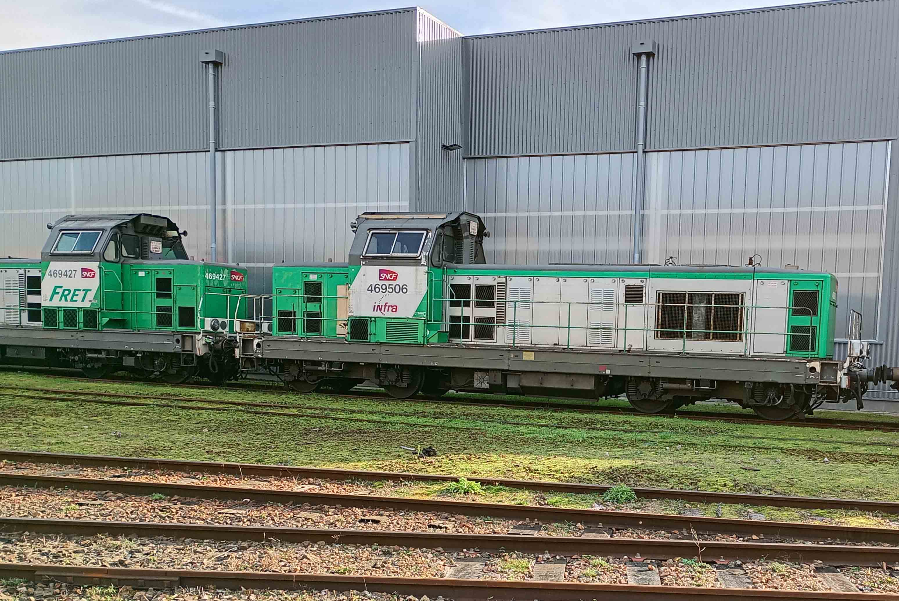 Voici la 469506 Infra en livrée Fret (ex 66506) avec la 22383 en tête avec une rame Infra qui arrive du Sud-ouest à 15h28
