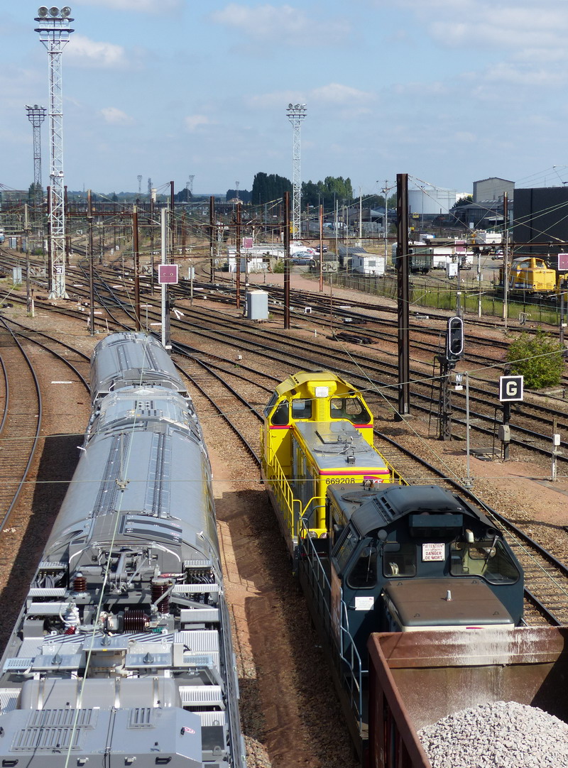 La photo du jour avec la 669208 dans sa nouvelle livrée Infra sur une des voies de sortie des ateliers du Technicentre de SPDC