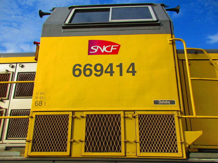 - Machines BB 669414 Chalindrey en livrée jaune Infra (côté Tours)
