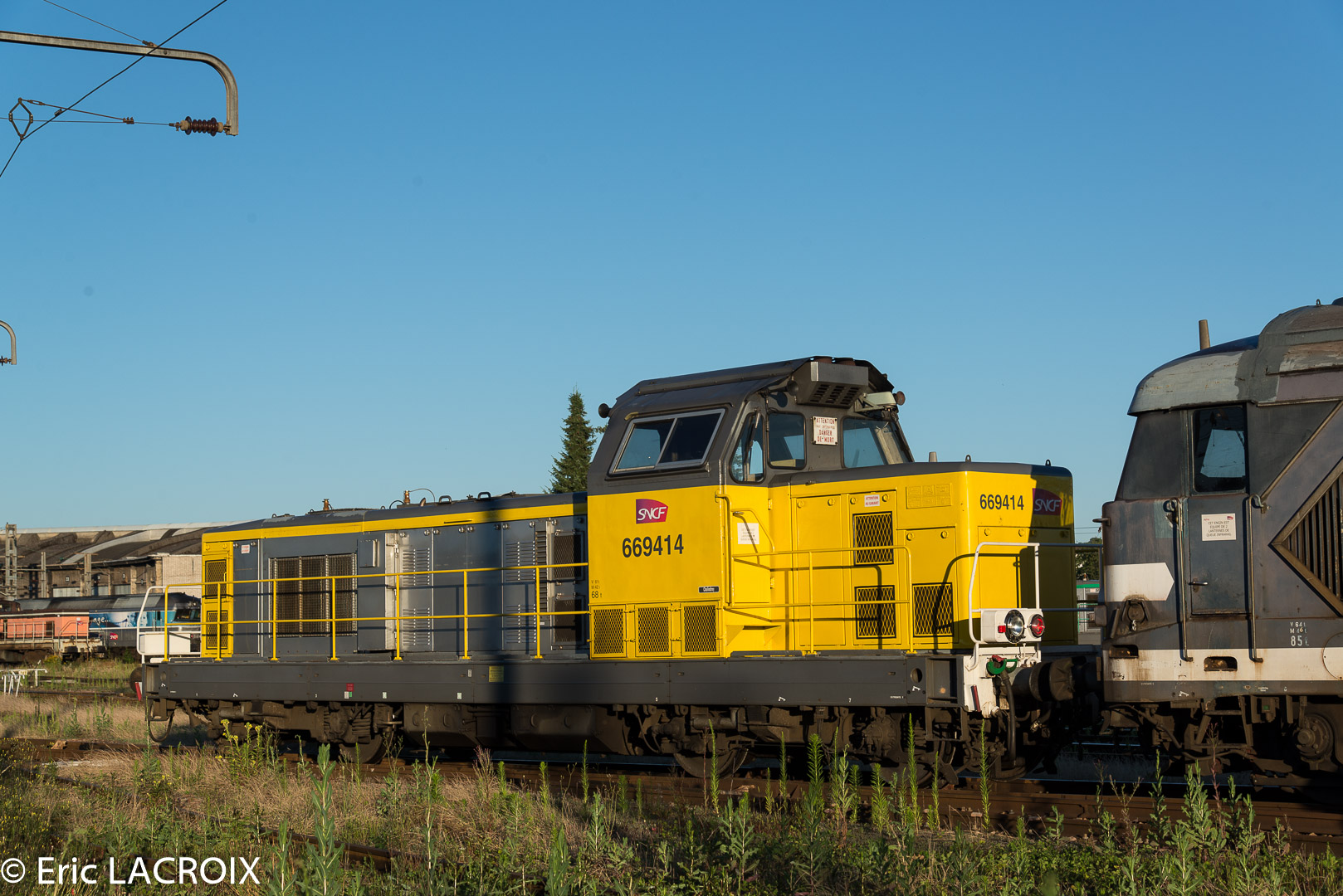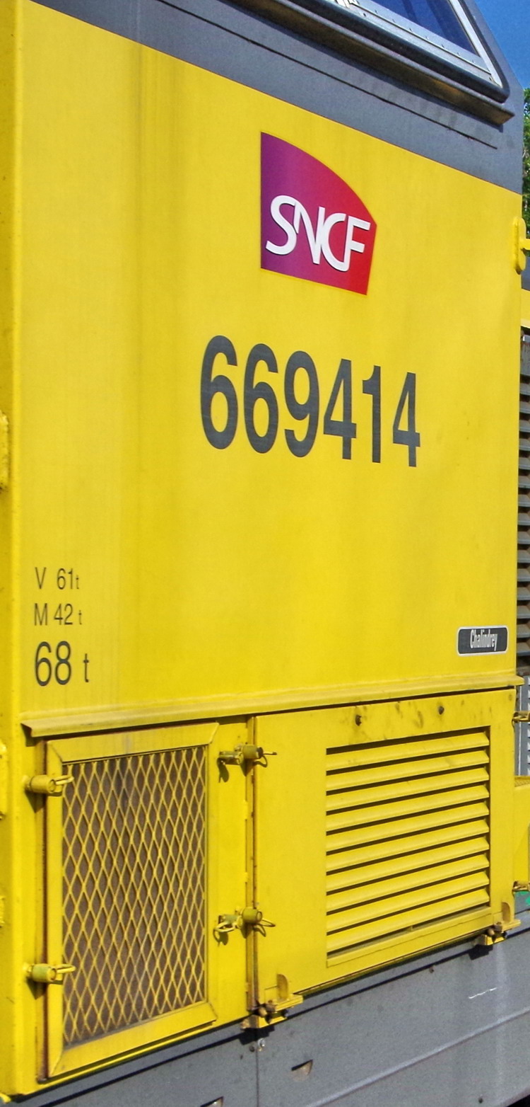 - Machines BB 669414 Chalindrey en livrée jaune Infra (côté Tours)