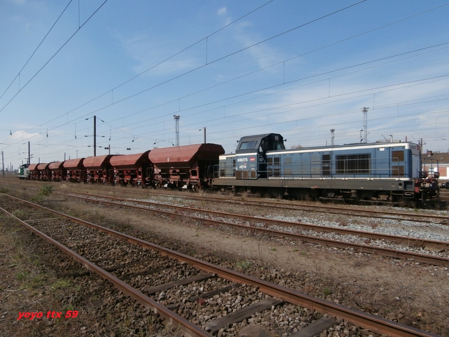 Le voici a Lille Délivrance sur une petite rame Infra en compagnie du BB 66175 :