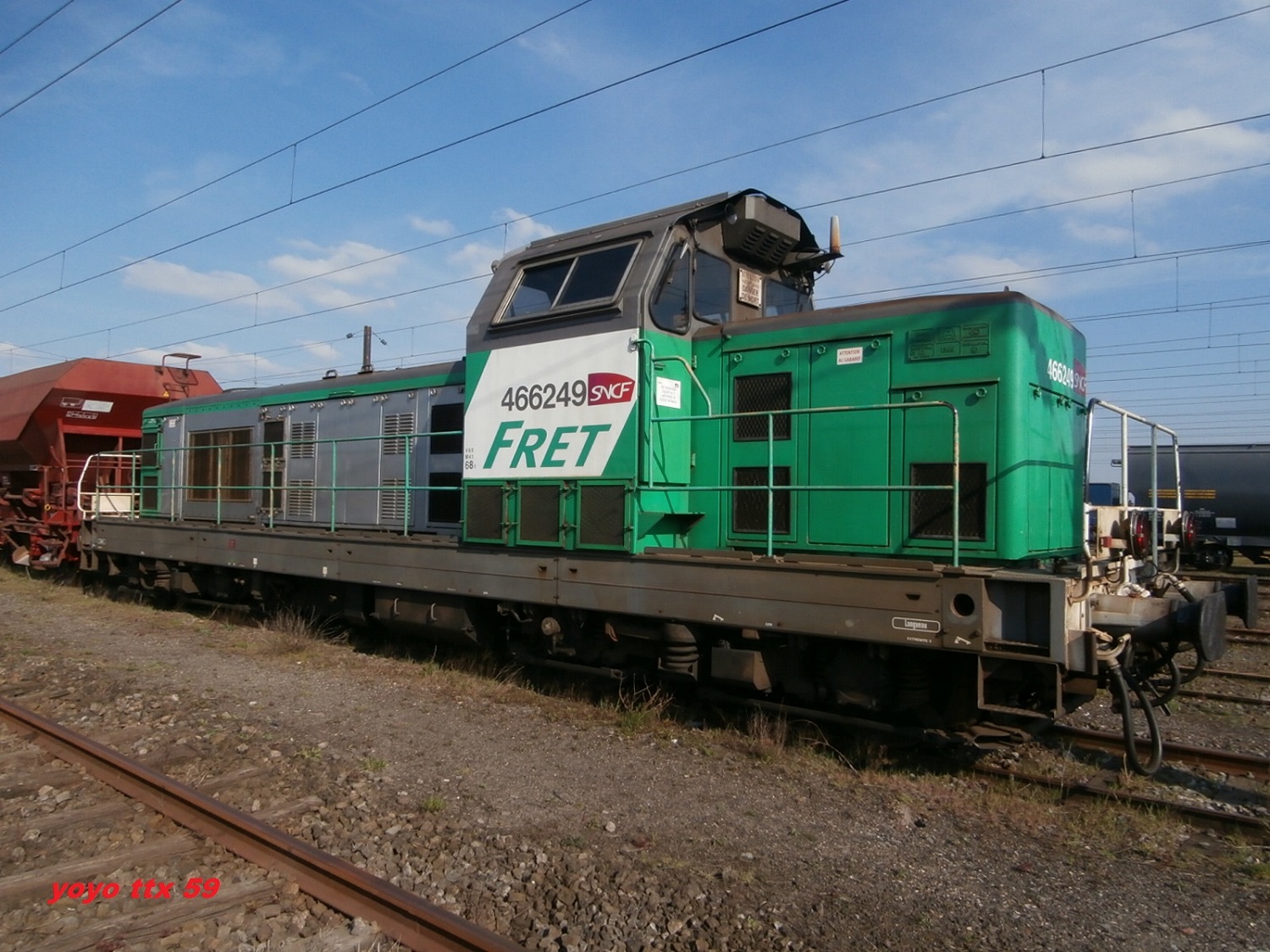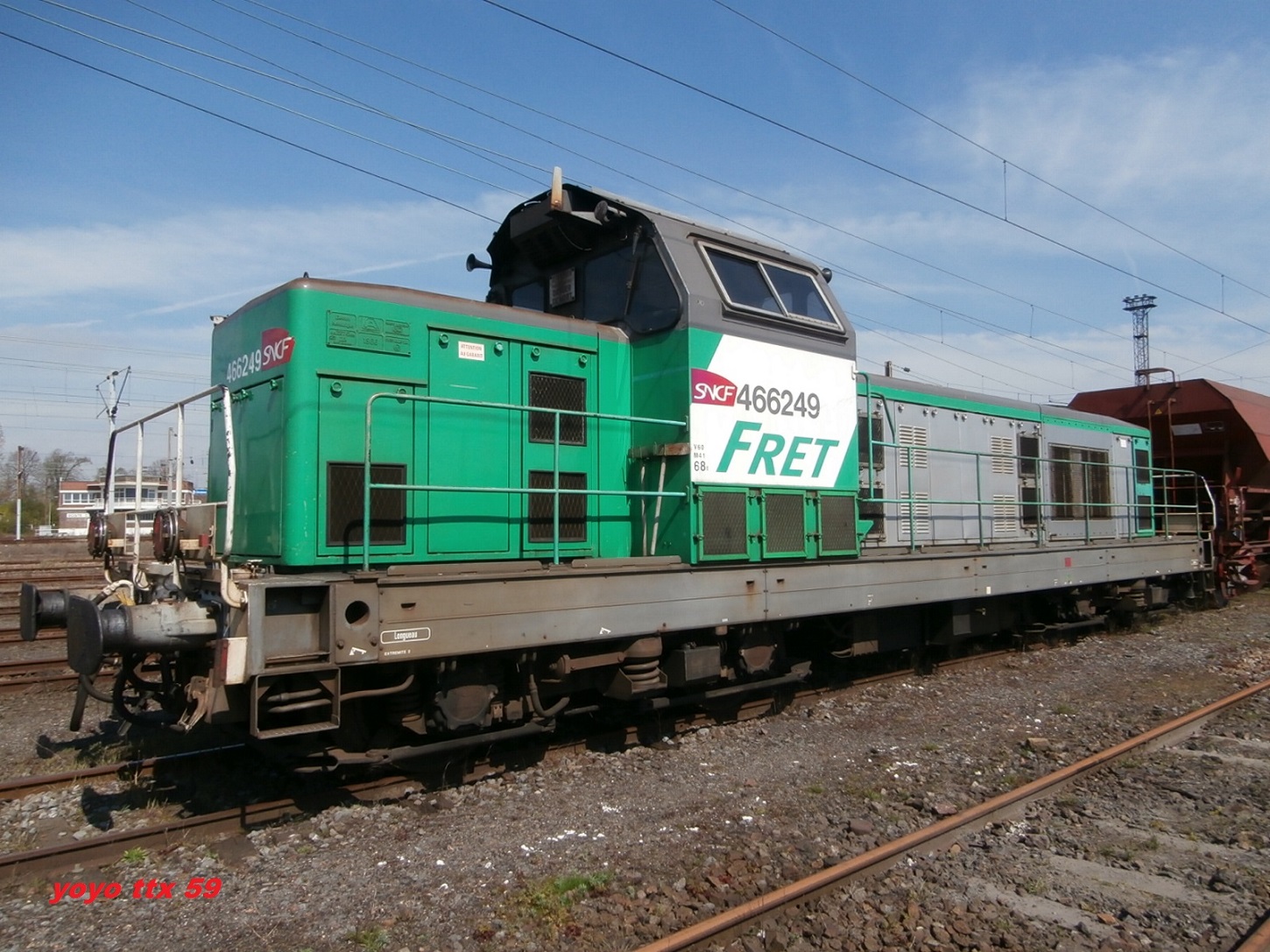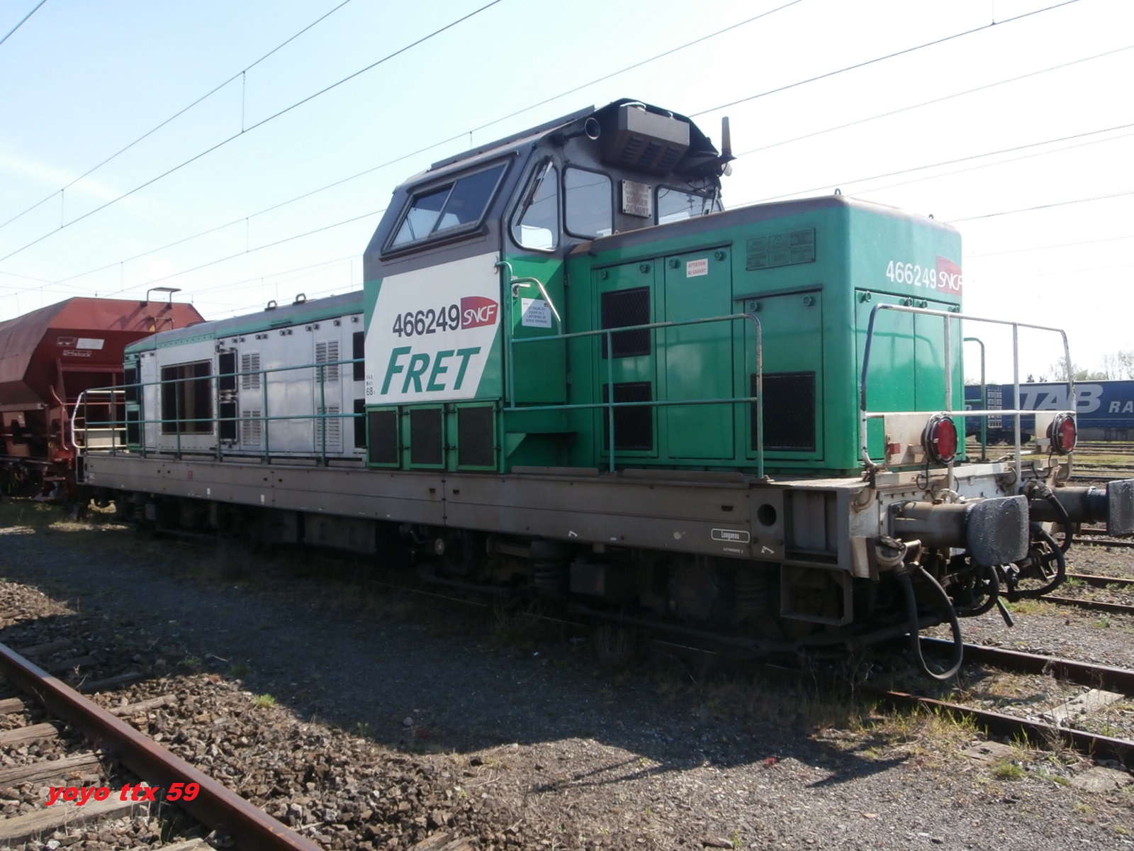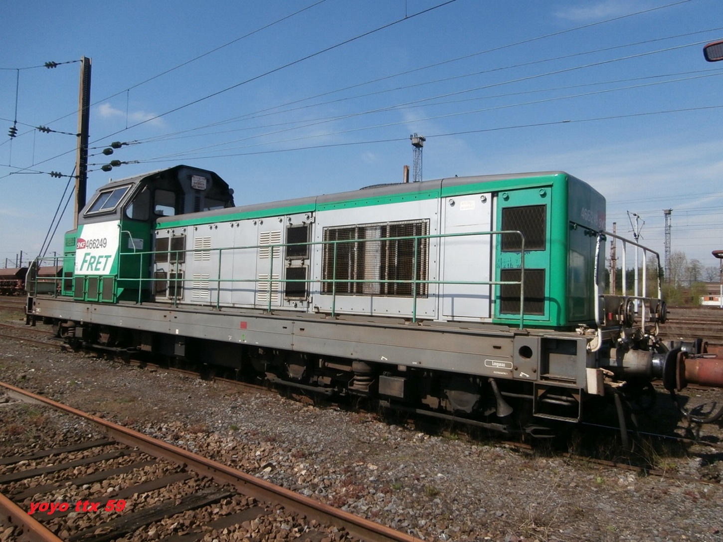 Voici la 466249 Infra en livrée Fret (mise en service le 15-07-1966) en véhicule sur une rame Infra avec la 667624 en tête