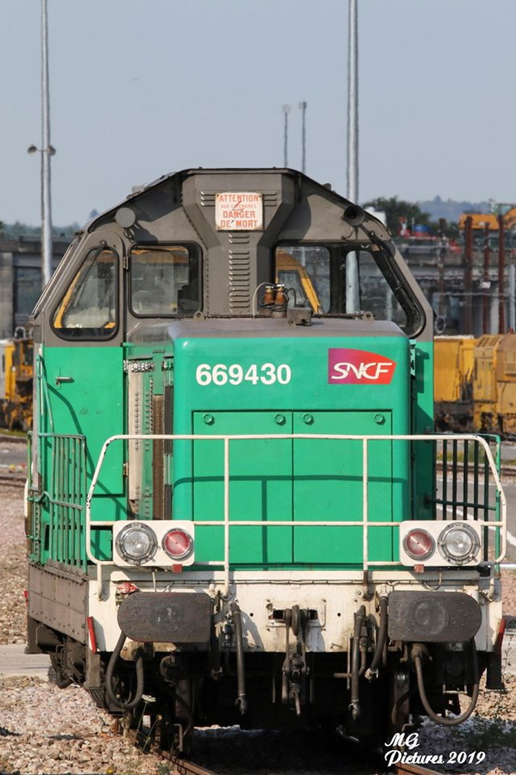 Voici la 669430 Infra avec le logo en livrée Fret (ex 66430 mise en service le 03-04-1969) en queue de TM passage par la gare de SPDC pour