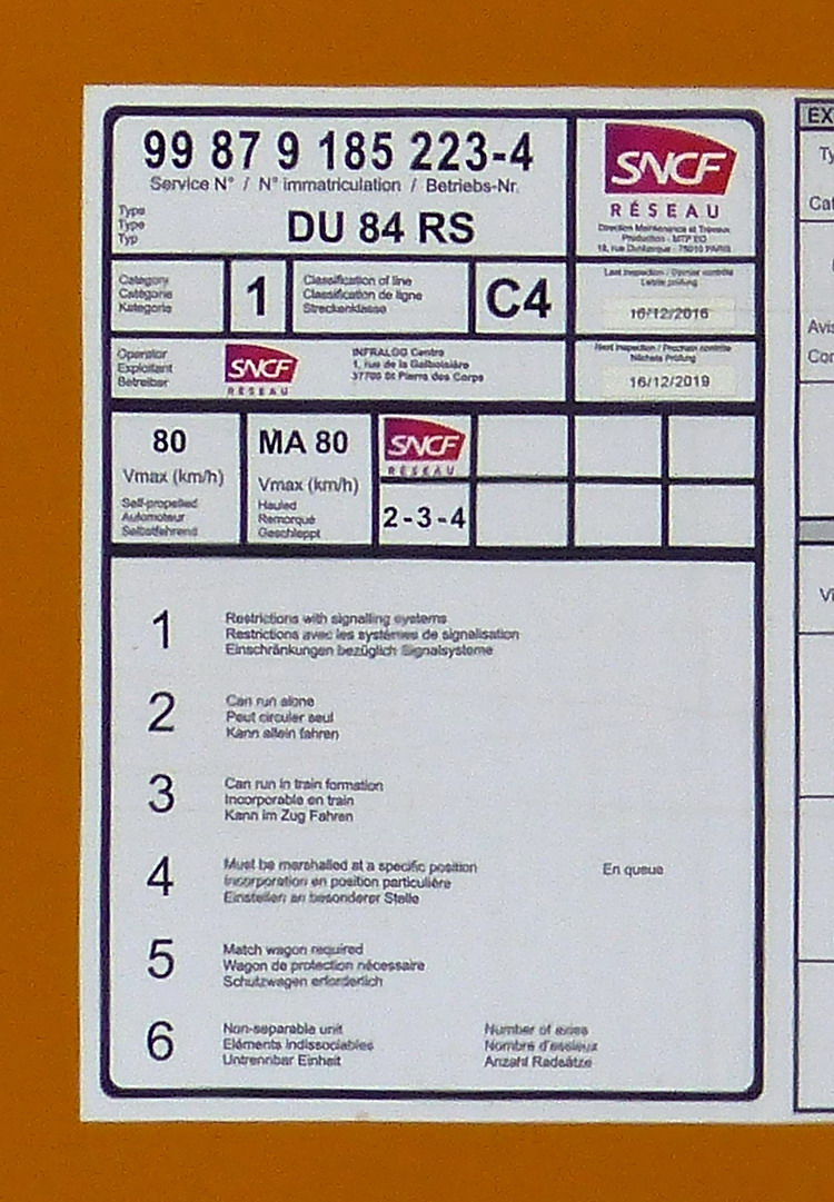 Voici la Draisine DU 84 RS 9-723 - 99 87 9 185 223-4 SNCF RESEAU Infralog Centre Saint Pierre des Corps
