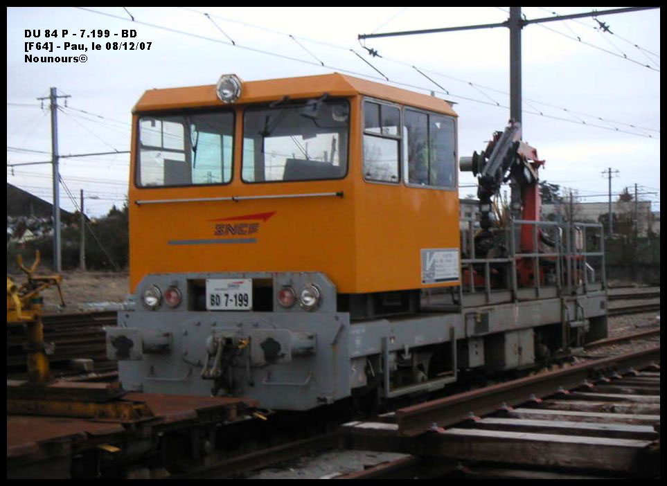Vu ce jour à Pau, la draisine DU84 n°7199 région SNCF de Bordeaux :